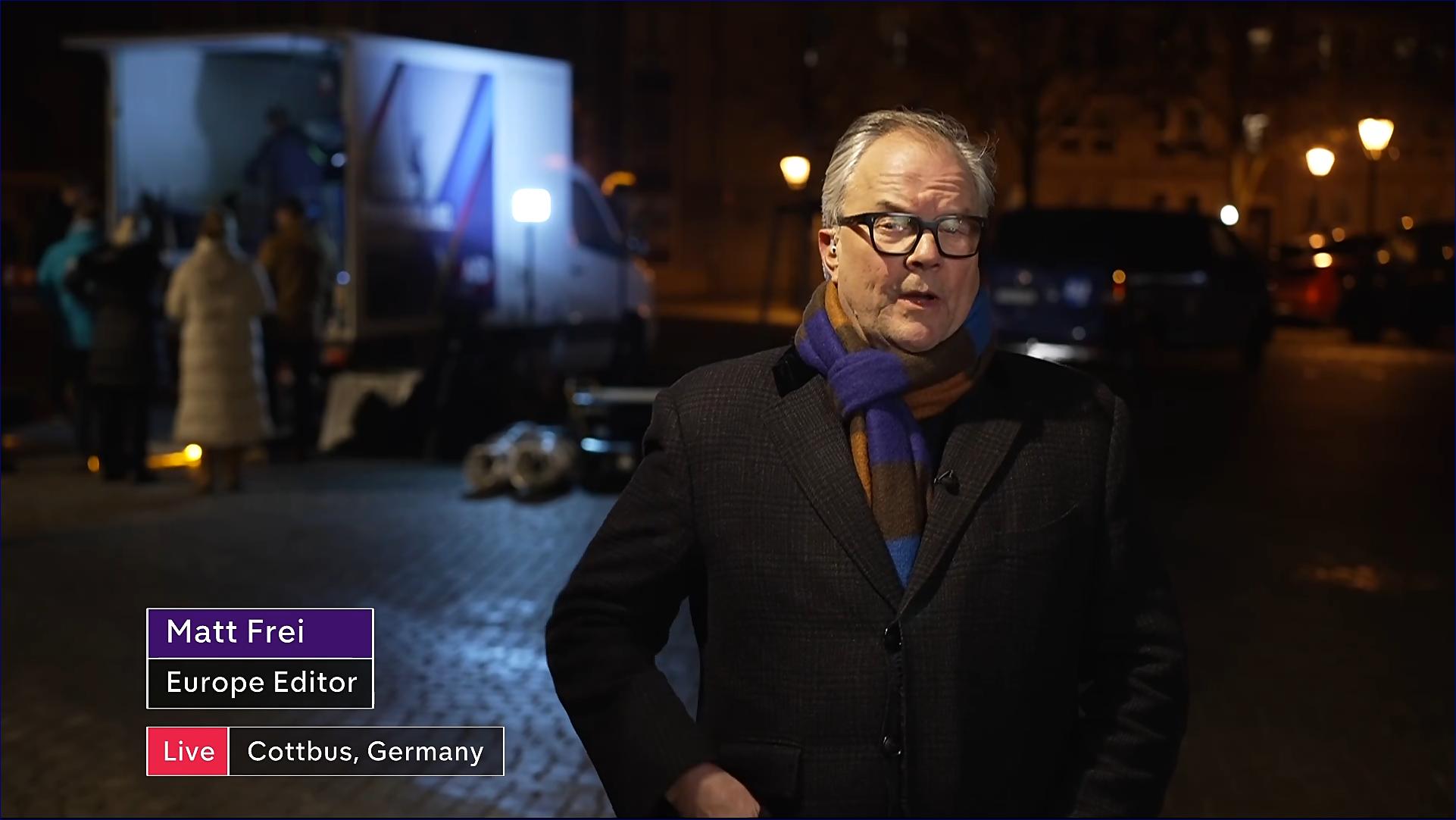 Moderátor, Channel 4 News, pátek 21. února 2025, 19 hodin: Tento víkend se voliči v Německu zúčastní voleb, které by mohly ještě více otřást politickým konsensem. Zatímco konzervativní CDU má pozici největší strany, největší zemětřesení by mohl způsobit vzestup krajně pravicové strany AfD, kterou hlasitě podporují někteří spojenci prezidenta Trumpa. Matt Frei je dnes večer v Německu, Matte.