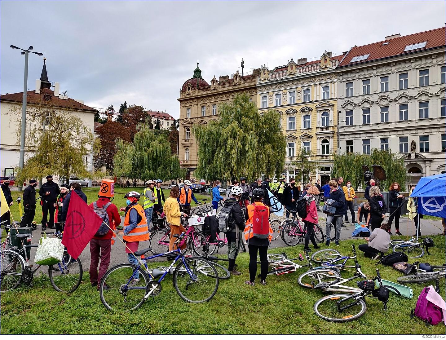 Včera po páté hodině odpolední vyrazila z pražského Klárova skupina cyklistických nadšenců z hnutí Extinction Rebellion (Rebelie proti vyhynutí) na cyklojízdu po městě. Předem ohlášená akce, jež probíhala v souladu s platnými protiepidemickými opatřeními, je součástí týdne Velké rebelie s mottem „Chceme žít!“[1] Jízda navázala na dopolední protest před Ministerstvem financí.[2] Dále se chystá zvířecí pochod a velká blokáda některé ze státních institucí.