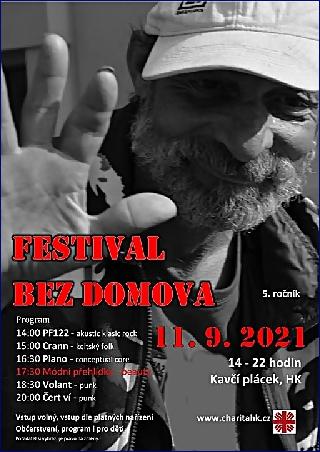 Srdečně vás zveme na 5. ročník FESTIVALU BEZ DOMOVA. Festivalu o hudbě, o bezdomovectví, festivalu o životě. Akce proběhne dne 11.9. v Hradci Králové, jako open-air na Kavčím plácku