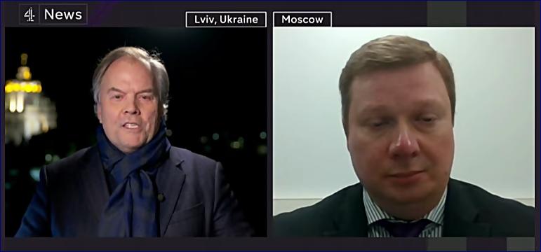Reportér: Ale Dmitriji, na ukrajinském území jsou ruské tanky. Směrem ke Kyjevu míří sedmnáctikilometrová kolona ruských obrněnců. V Charkově je ruské dělostřelectvo. To jsou ruští vojáci. Je to ruská technika. K čemu myslíte, že tam jsou?