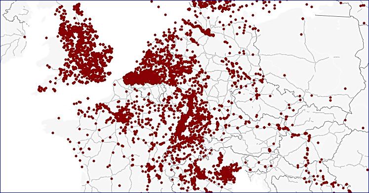 Mapa ukazuje, že největší znečištění je v Belgii, kde byly PFAS nalezeny v podzemních vodách v koncentraci až 73 milionů ng/l v okolí výrobního závodu společnosti 3M na výrobu PFAS ve Zwijndrechtu ve Vlámsku.