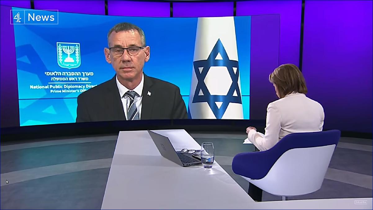 Moderátorka, Channel 4 News, pondělí 27. 11. 2023, 19 hodin: Nyní se ke mně z Tel Avivu připojuje Mark Regev, který je vysokým poradcem izraelského premiéra. Pane Regeve, děkujeme, že jste se k nám dnes večer připojil. Izraelci slíbili, že pokud Hamás bude pokračovat v propouštění rukojmích, budou příměří prodlužovat. Takže pokud bude situace pokračovat tak, jak se vyvíjela v posledních dnech, mohlo by být toto příměří prodlouženo o mnoho dní. To je to, co říkáte?