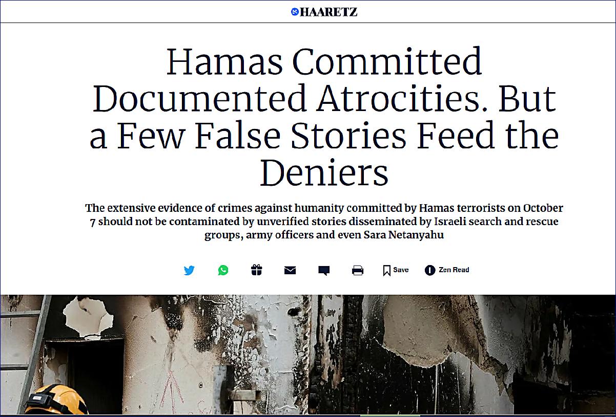 Izrael: Hamás 7 října 2023 vraždil, avšak četná zvěrstva, všeobecně popisovaná a šířená, se nestala