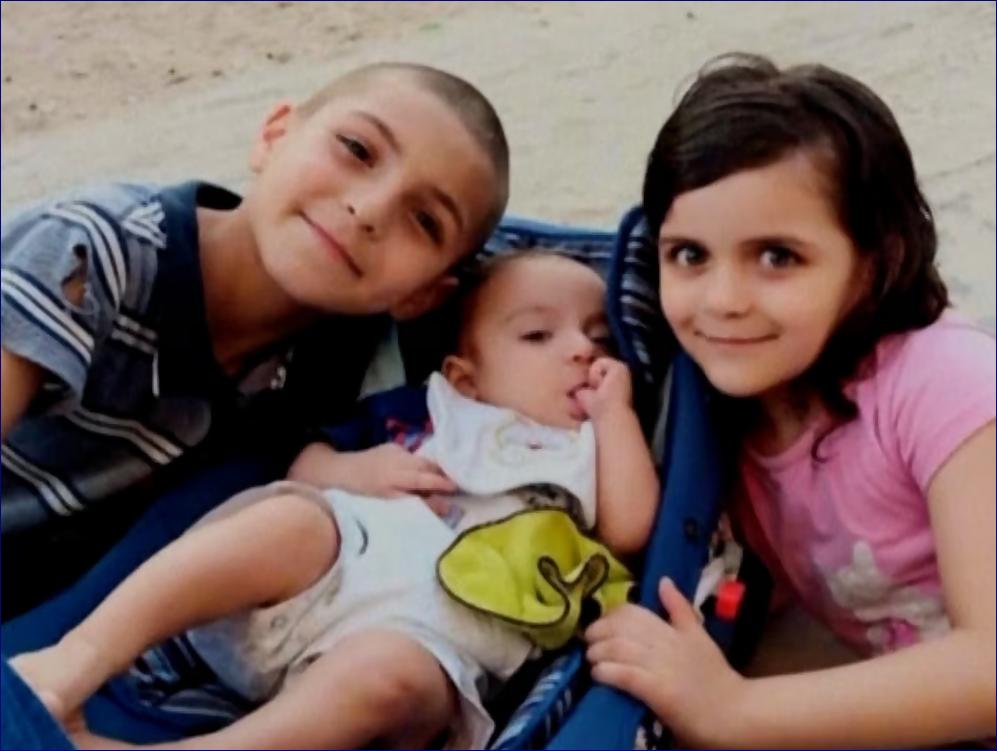 Foto: Adam al-Najjar, který útok přežil, se sestrami Sidrou a Eve, dvěma z dětí, které zahynuly.Dr.