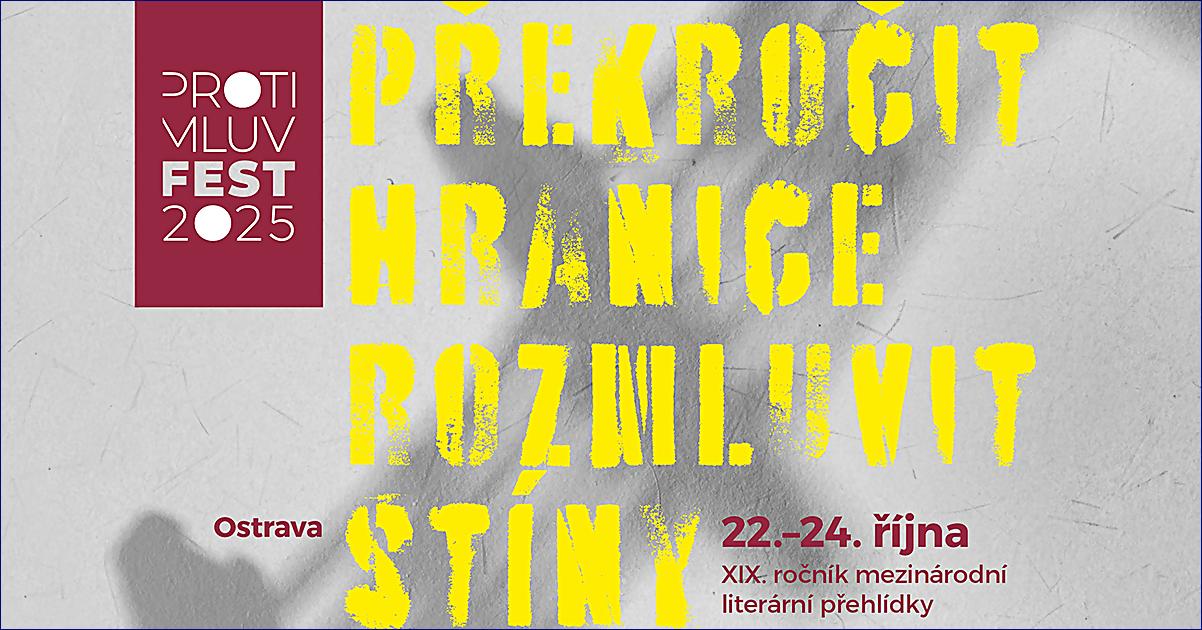 dovolte, abychom Vás za celý festivalový tým ProtimluvFestu 2025 pozvali na letošní 19. ročník přehlídky v Ostravě věnované tématu literární zkušenosti hranice. Uspořádáním festivalu chceme položit mj. otázku, kterou jsme kladli respondentům v anketě pro zářijový Protimluv 3/2025: „Co pro Vás/ Vaši oblast zájmu znamená hranice a pohraničí?“