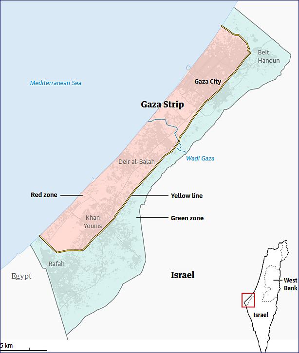 Zahraniční síly budou zpočátku nasazeny po boku izraelských vojáků na východě Gazy, přičemž zdevastovaný pás bude rozdělen současnou „žlutou linií“ kontrolovanou Izraelem, jak vyplývá z dokumentů americké armády a ze zdrojů informovaných o amerických plánech.