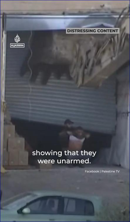Dva neozbrojení muži, kteří se vzdali izraelským vojákům s rukama nad hlavou, byli několikrát střeleni do zad. Palestinské úřady tento čin označily za „chladnokrevnou popravu“.