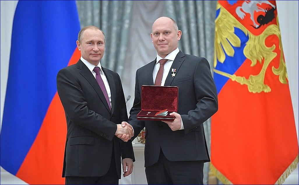 Čtyřiapadesátiletý kosmonaut Oleg Artěmjev [na přiloženém snímku s Vladimirem Putinem v Kremlu - pozn. KD], který uskutečnil tři lety do vesmíru, byl zařazen do posádky jako součást programu společných letů na kosmických lodích Crew Dragon a Sojuz. Od roku 2019 je poslancem Moskevské městské dumy za frakci Jednotné Rusko.
