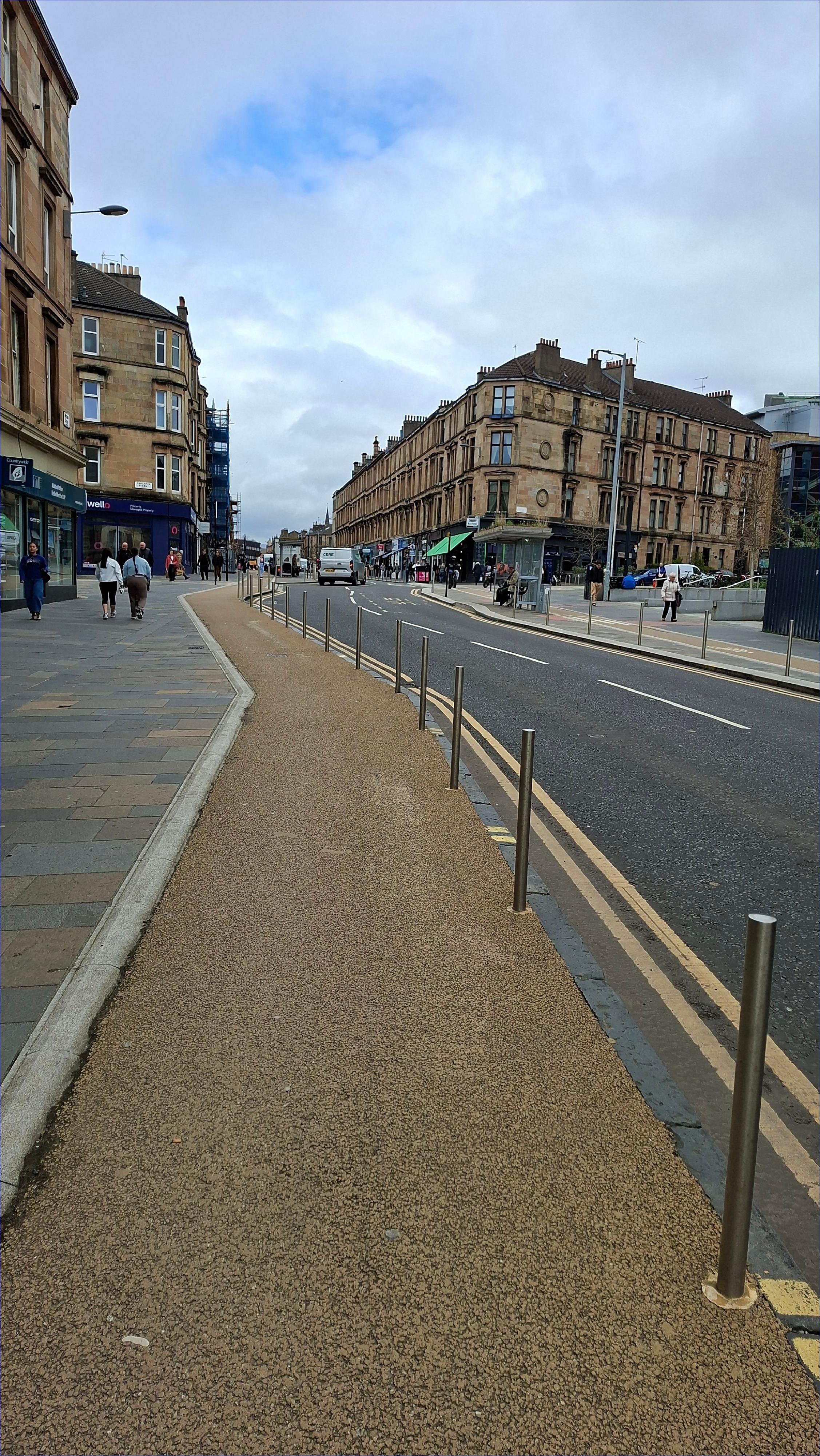 To je ulice Byres Road ve skotském Glasgow.