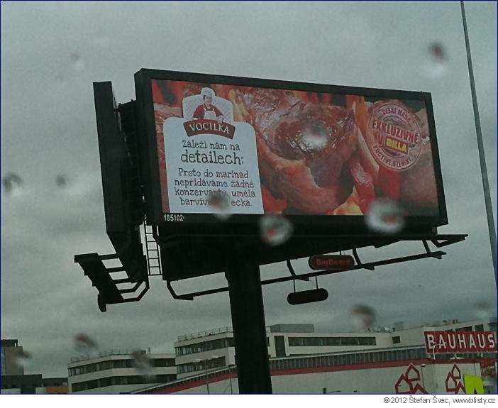 Nedávno jsme tu psali o Rexona, která se bez ohledu na čeština i zákazník odmítá skloňovat. Pak se objeví billboard s Billou a řeznictvím Vocílka, kterému prý záleží na detailech. Pokud je to pravda, proč mu na nich proboha záleží "v Billa"? Tedy ve firma, která na detail jakéhokoliv jazyk zjevně zvysoka výkal?
